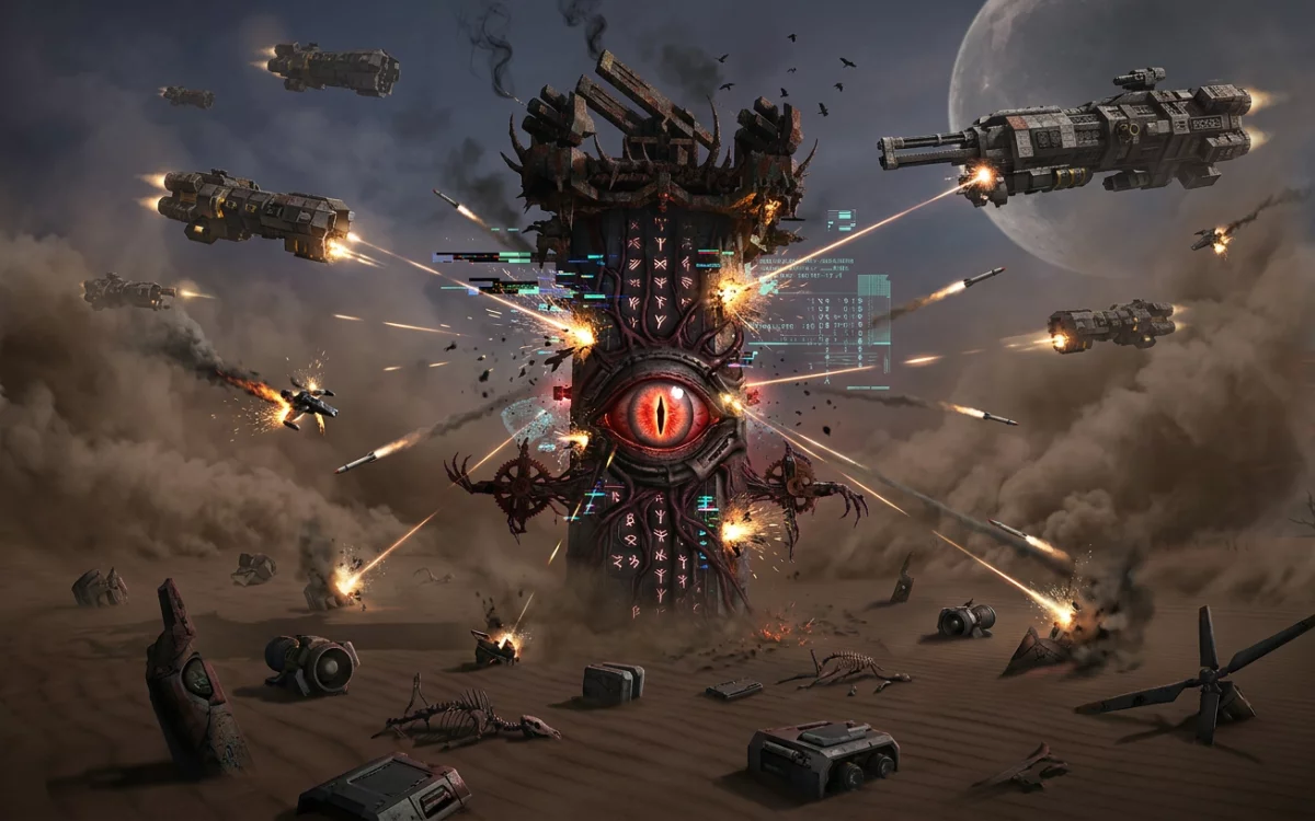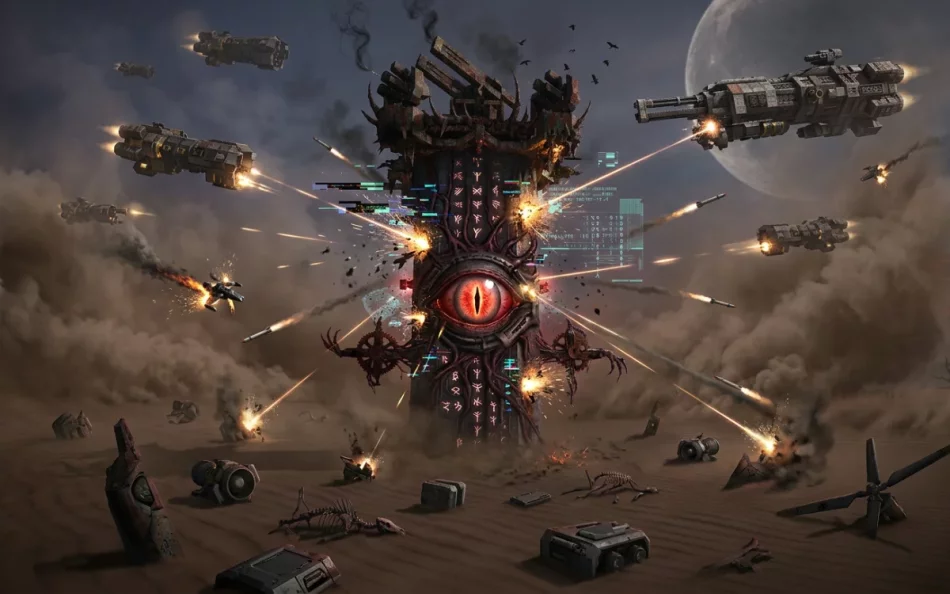 *В старых хрониках шепчут: «**Око не умирает**. Оно просто закрывается». **Недремлющее Око** — не страж. Это тюремщик. Оно приросло к базе взглядом, сделав её бессмертной на время своей жизни. Снаряды тонут в его поле, как мухи в смоле. Но башня — не вечна. Камень крошится. Глаз мутнеет. А когда он закроется в последний раз — база вдохнёт и сразу умрёт. Твоя задача — ускорить этот выдох. Сначала башня. Потом тишина. И только потом — база.*